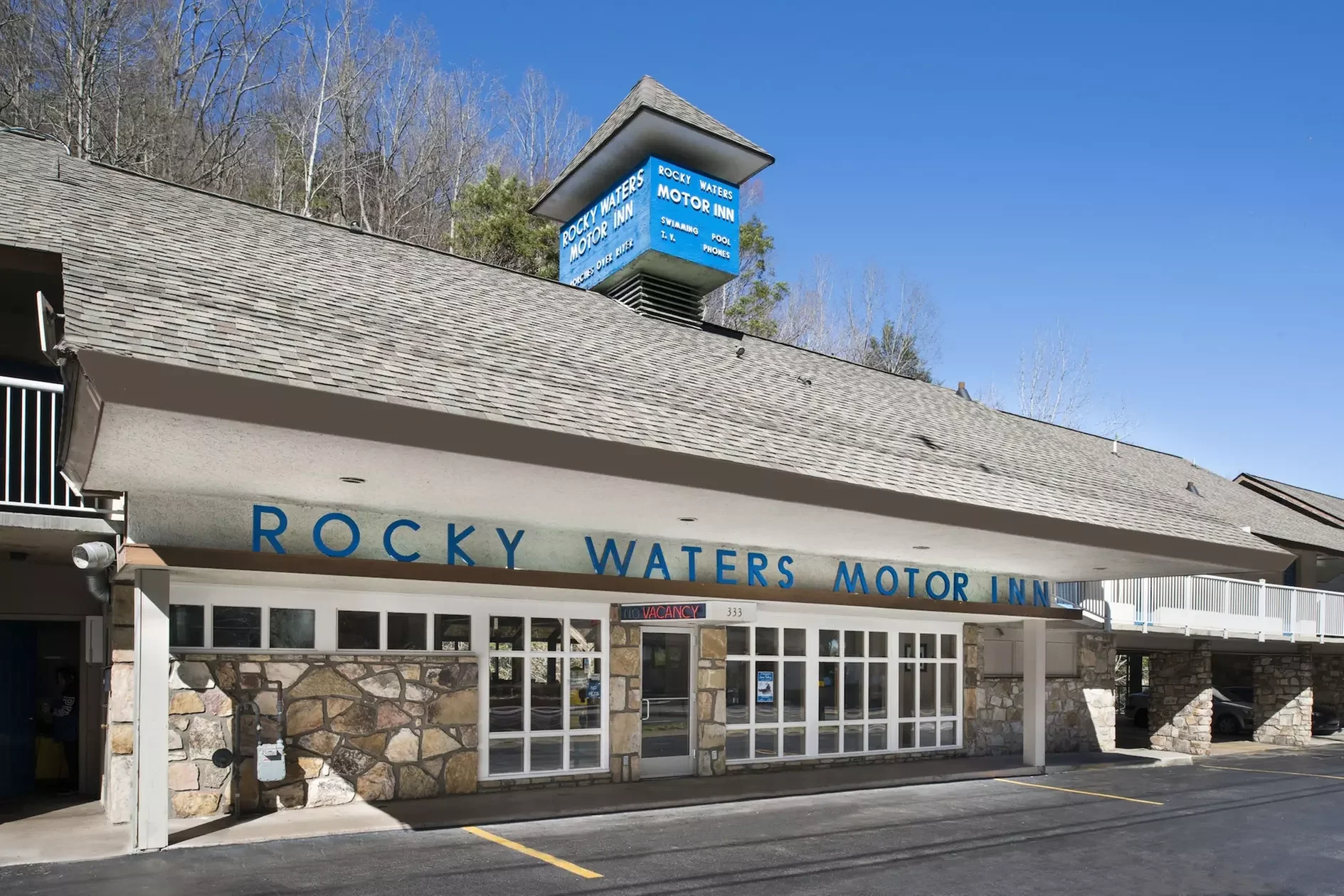 Historic Rocky Waters Motor Inn sits in a part of Gatlinburg most people in the region think they already understand. Neon, pancake houses, traffic, and nostalgic inns stacked along the parkway. The property itself has been welcoming visitors since the 1930s, first as a collection of rustic cabins and later as a family-owned roadside motel perched over the Little Pigeon River.